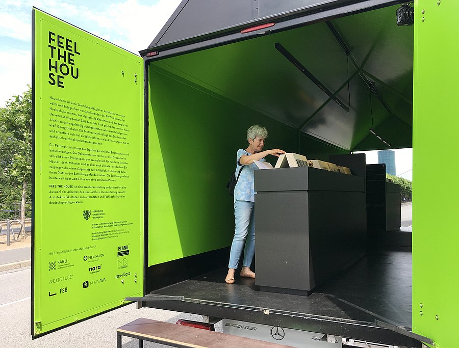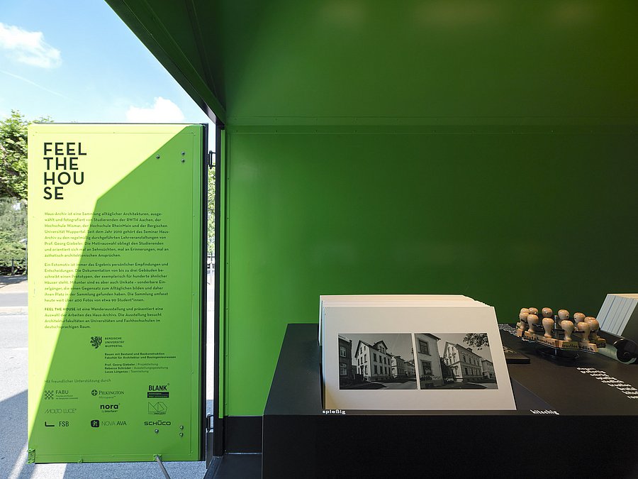 FEEL THE HOUSE ist eine Wanderausstellung, organisiert und gestaltet vom Lehrstuhl Bauen mit Bestand und Baukonstruktion unter der Leitung von Prof. Georg Giebeler. In einem Ausstellungsmobil wird eine Auswahl fotografischer Arbeiten der Sammlung Haus-Archiv präsentiert.