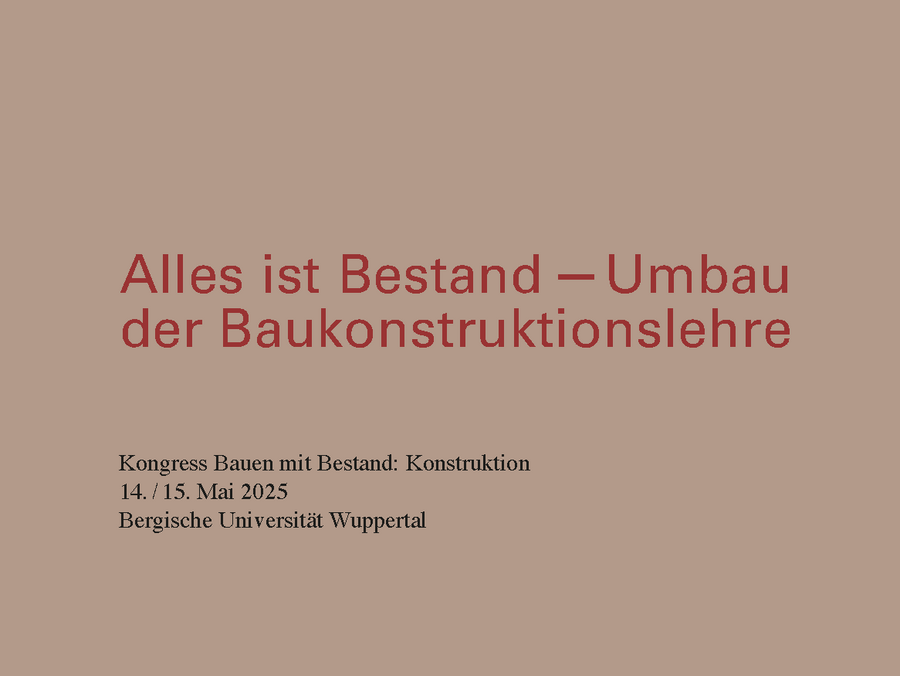 Zum Kongress Bauen mit Bestand: Konstruktion haben sich im Mai 2025 in Wuppertal über 100 Lehrende und Studierende aus ganz Deutschland getroffen, da unbestreitbar ist, dass sich die Lehre der Baukonstruktion ändern muss.